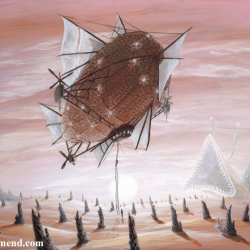 Traders harvest chips of brilliant and shimmering rock from outwardly dull-colored standing stones in a seemingly desolate place.