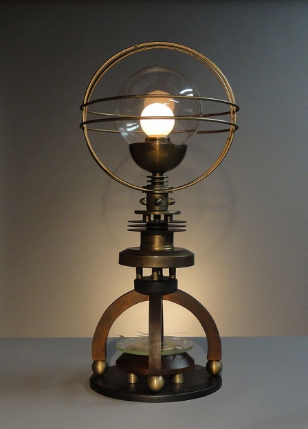 It is made from solid brass, frosted glass, and mahogany, with a hand made, HandPainted Moons in eight phases plus a 12 hour clock with hand made brass hands.